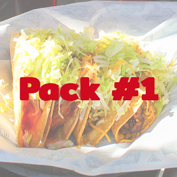 - 4 hardshell tacos (beef, ground beef, chicken)- 1 quesadilla- 1 pint rice- 1 pint beans- 2 medium sodas