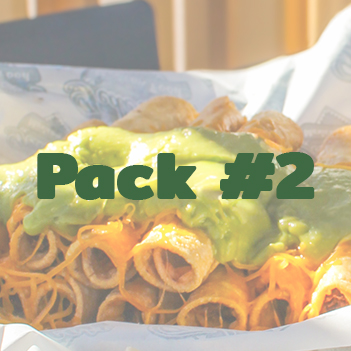 - 10 rolled tacos with cheese & Guacamole- 1 cheese quesadillas- 2 medium sodas